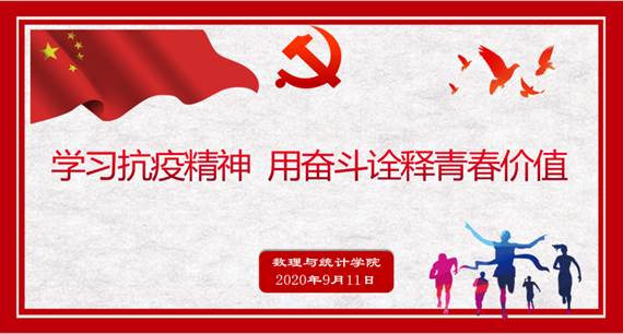 9月11日,英国正版365官方网站通过腾讯会议为全院研究生、本科生开展“开学第一课”教育,数理外国语联合党委钱慧敏书记以《学习抗战精神,用奋斗诠释青春》为题,分享在疫情防控中的英雄事迹和青年人应该思考的四个问题,和同学们一起学习伟大抗疫精神,坚定理想信念、涵养家国情怀、砥砺奋斗精神,树立正确的世界观、人生观和价值观。