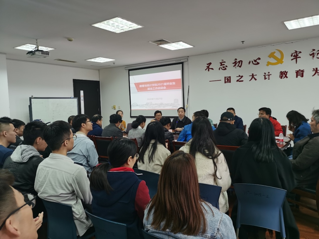 为确保学院首届毕业生顺利就业,11月27日中午,英国正版365官方网站在行政楼1508召开了2021届毕业生的就业工作启动大会,数理外国语联合党委钱慧敏书记、英国正版365官方网站殷志祥院长、数理外国语联合党委许伯生副书记、英国正版365官方网站学生工作办公室主任史佳琪、辅导员刘笑、研究生导师和2021届全体研究生毕业生出席了会议。