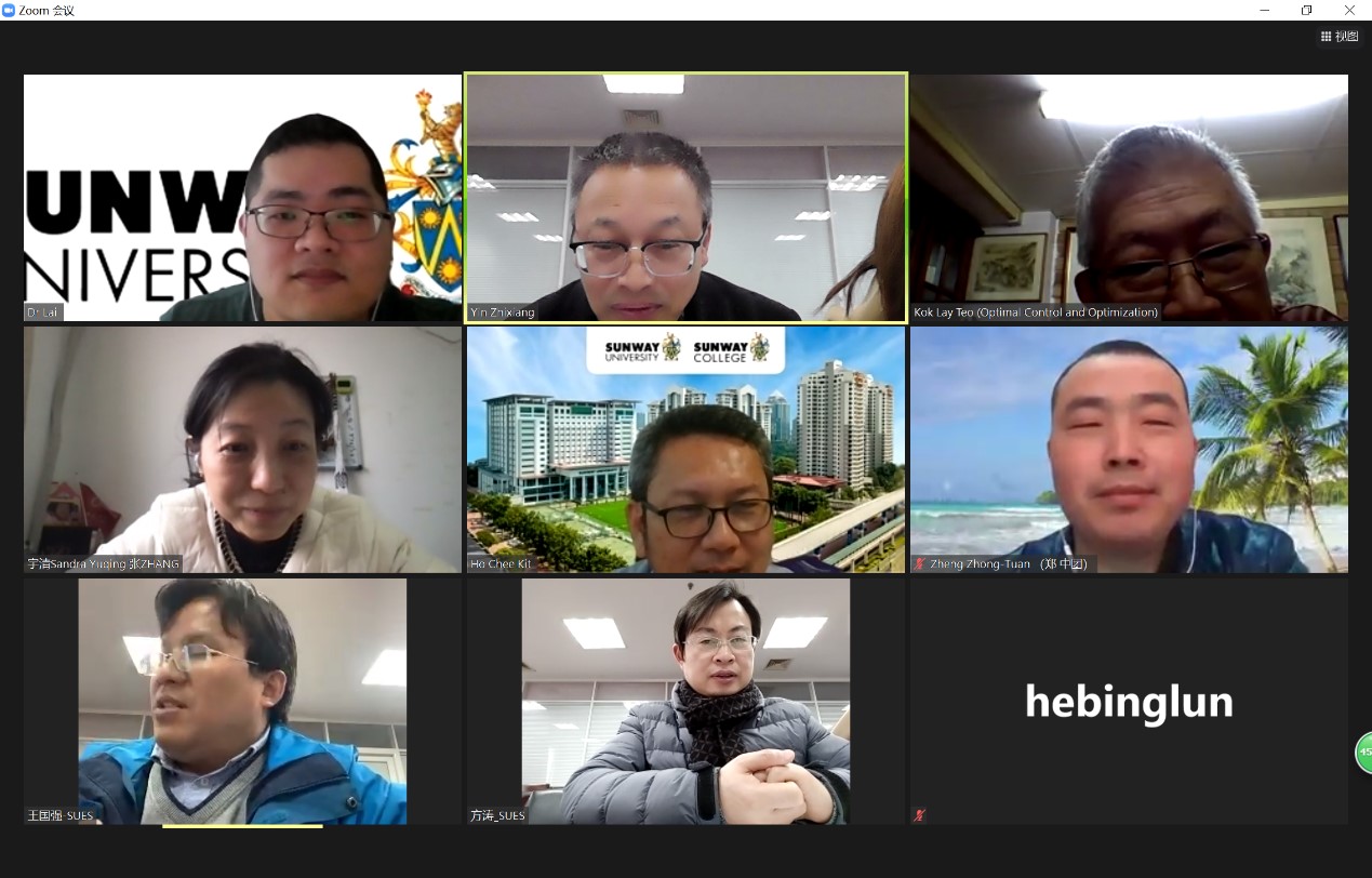为持续推进我校国际化发展战略、助力学校博士授权单位建设,1月27日下午,英国正版365官方网站同马来西亚双威大学(Sunway University)数学科学学院就联合培养博士研究生项目举行了第二次推进会,会议由英国正版365官方网站院长殷志祥主持。受新冠肺炎疫情的影响,本次项目推进会仍采用线上会议的形式展开。英国正版365官方网站院长殷志祥教授、副院长王国强教授、国际合作与交流处张宇清副处长、何冰轮老师、统计与数据计算系主任江开忠副教授、系副主任方涛副教授、郑中团副教授以及学院国际交流秘书周晶博士共同参加了此次会议,双方就联合培养博士研究生项目的协议条款进行了详细讨论。