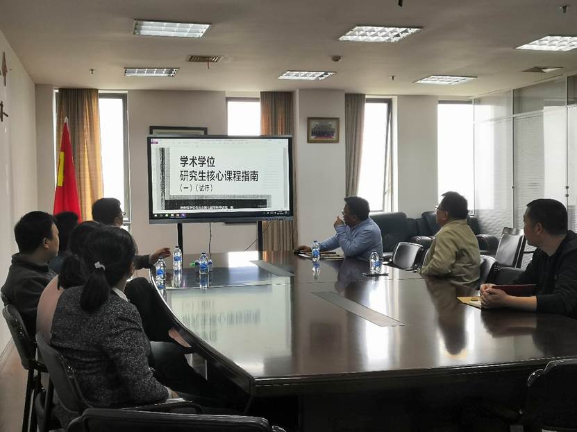 会上集中学习了《学位授予和人才培养学科目录(2018年)》《学位授予和人才培养一级学科简介》《一级学科博士、硕士学位基本要求(修订)》《学术学位研究生核心课程指南(试行)》和《高等学校课程思政建设指导纲要》以及学校《关于2021年研究生培养方案修(制)订工作的通知》等文件。王国强副院长介绍了此次培养方案修订依据、修订范围、修订要求、工作程序等内容,并重点解读了学校关于培养方案修订中的新要求和新变化。