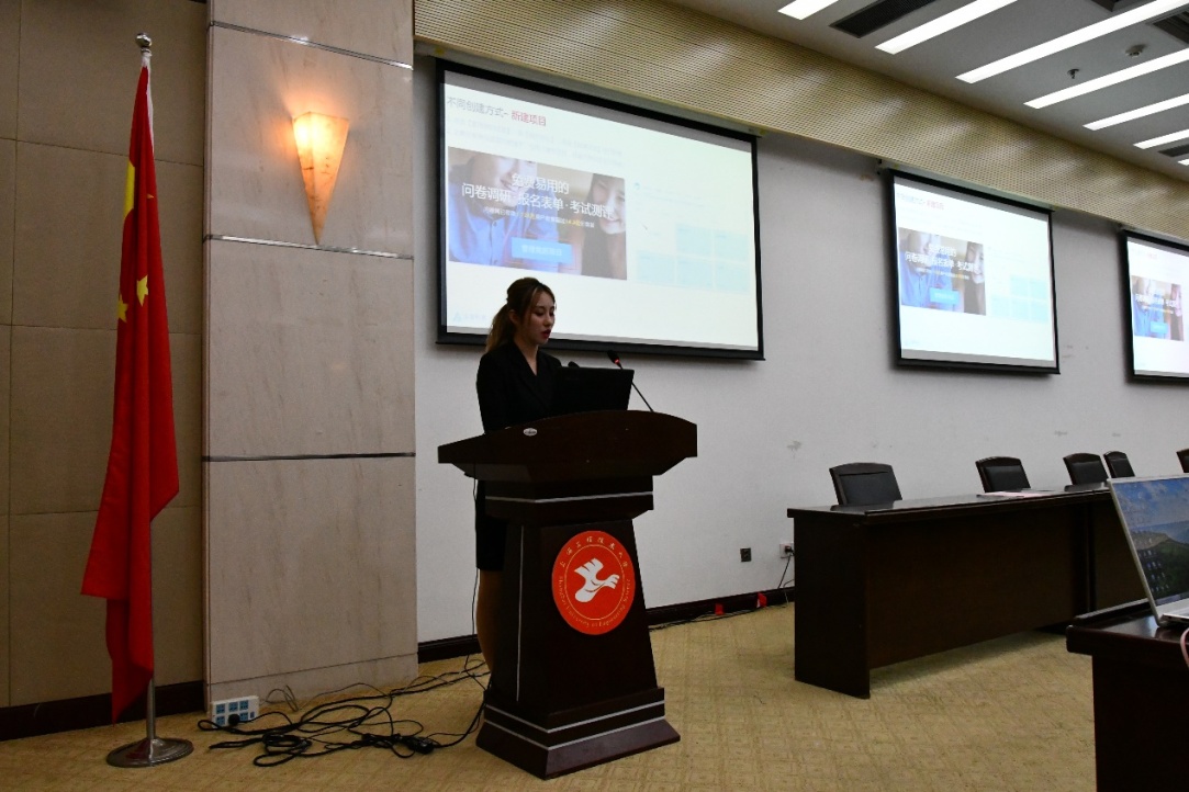 签约后,问卷网市场经理王童文从“高效备赛,问卷网助您一臂之力”角度向参加全国大学生市场调查与分析大赛的学生介绍了利用网络收集信息和进行数据处理的方法。
