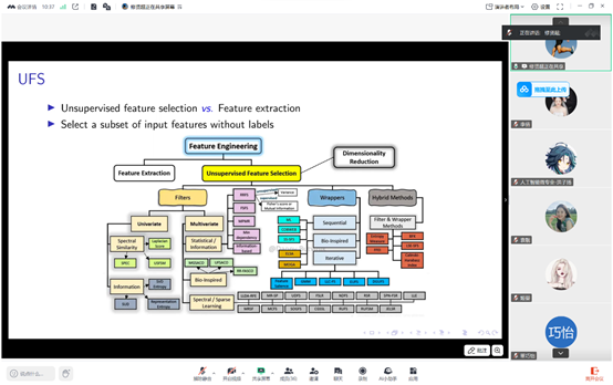 为促进学术交流、探讨前沿科技发展,英国正版365官方网站6月21日19:00-20:00邀请上海大学的修贤超教授在腾讯会议做题为“Unsupervised Feature Selection: From MachineLearning To LargeLanguage Models”的报告,为与会师生带来了一场极具前瞻性的学术盛宴。