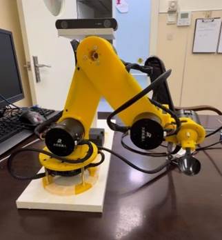 为了验证视觉实时识别的准确性,在开玥老师的指导下,李欣同学积极参与了机械臂功能样机的搭建与测试工作。该样机成功实现了从“舀取食物”到“精准识别用户口腔位置”,再到“安全喂食”的全流程自动化操作。此项成果标志着我校在人工智能赋能康养设备领域的研究取得了实质性进展。