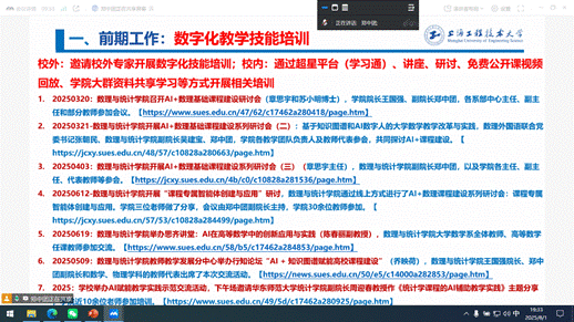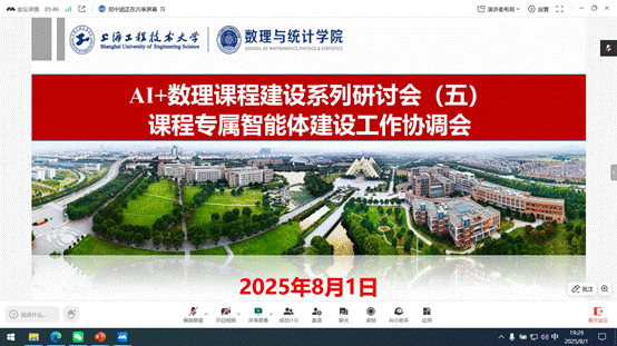 大学数学系、应用数学系、大学物理系、物理实验中心、光电物理系依次以PPT形式汇报了课程智能体建设组织和进展情况,展示了阶段性成果,并就建设过程中的相关问题进行了交流研讨。
