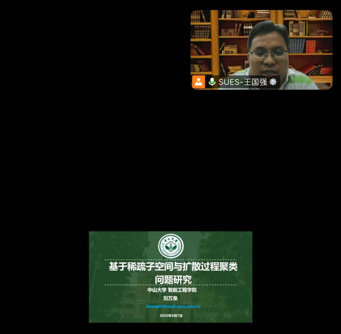 9月7日,中山大学刘万泉教授应英国正版365官方网站邀请通过腾讯会议在线为广大师生作了题为“The Investigation of Clustering Techniques via Sparse Subspace Optimization”的学术报告。报告会由英国正版365官方网站院长王国强教授主持。