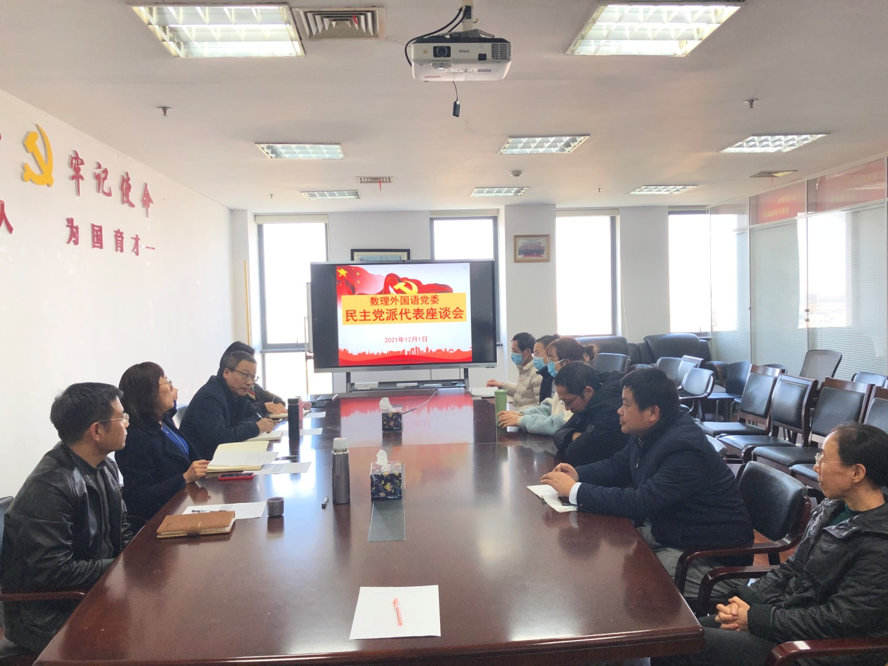 为进一步推进学院统战工作,加强与民主党派教师联系,12月1日,数理外国语联合党委举办民主党派教师代表座谈会,联合党委书记钱慧敏、外国语学院院长王刚、英国正版365官方网站院长殷志祥、联合党委统战委员李铭明和两学院九三学社、民盟、民进、致公党代表参加座谈会。