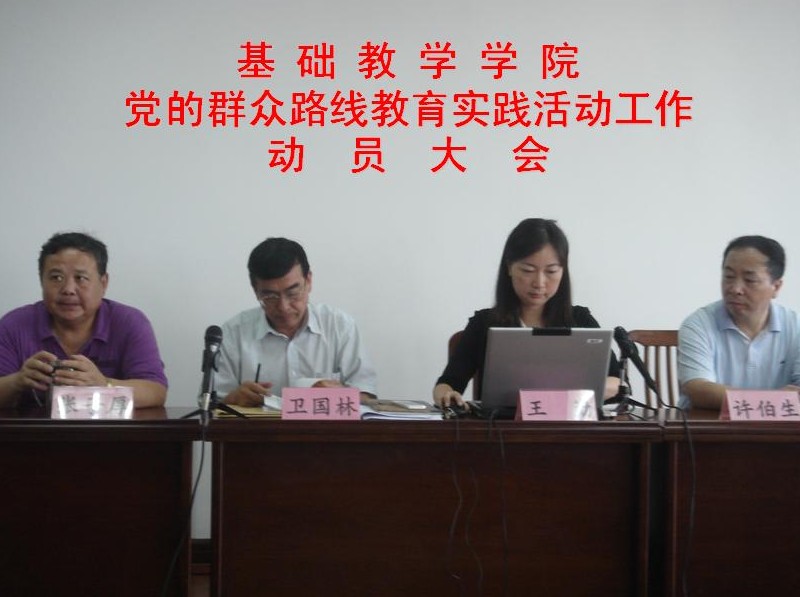 9月12日下午,基础教学学院党总支在行政楼1508室召开党的群众路线教育实践活动动员大会。校第四督导组、学院领导、部分党代会代表、教代会代表、民主党派代表共计30余人出席了大会。学院党总支书记王勤作动员报告,校第四督导组组长卫国林作督导工作讲话。 学院党总支按照校党委的统一部署,成立了活动专设机构,制订了活动实施方案。党总支书记王勤作了动员报告,她首先传达了学校关于党的群众路线实践教育活动的总要求、主要任务和基本原则。接着介绍了学院党总支准备阶段的工作情况以及活动安排,活动分为三个环节,一是学习教育、听取意见。通过理论学习,进一步坚定广大党员、干部的理想信念和宗旨意识,通过听取意见,为对照检查、开展批评和解决问题打好基础。其中,在学习教育环节,学院党总支将采取“四个一”的形式:暨外请专题辅导报告一次;学院中心组集中学习交流一次;学院党政班子成员参加基层党支部专题组织生活一次;在全体党员个人自学的基础上,举行学院全体党员学习交流会一次。为了进一步发挥广大党员的主体作用和扩大教职工的参与面,听取意见将采取“一二三四五,意见不能捂”的方式:暨开展民主评议班子和班子成员一次;学院召开教师代表座谈会和学生代表座谈会两个;走访困难教职工三名;每位班子成员个别访谈在职教职工四名至少上交问卷调查五份;二是查摆问题、开展批评。班子和党员领导干部要认真撰写对照检查材料,并且召开一次高质量的专题民主生活会和专题组织生活会;三是整改落实、建章立制。班子和党员领导干部撰写整改方案,落实整改。改造、废除或建立一些规章制度,形成长效机制。 校第四督导组组长卫国林在讲话中指出,基础教学学院党总支对教育实践活动高度重视,做了大量准备工作。他对基础教学学院此次教育实践活动的几点要求,一是端正思想认识,聚焦重点问题;二是落实教育实践活动的基本要求;三是要采取务实管理措施;四是要坚持两手抓、两不误、两促进。卫国林表示,督导组将按照学校要求,紧紧围绕校党委开展工作,认真履行督导工作职责,坚持以好的作风抓督导,欢迎大家向督导组反映情况,并对督导组的工作进行监督。 与会同志还对学院领导班子和党员领导干部的作风建设和在“四风”方面存在的突出问题进行了评议。