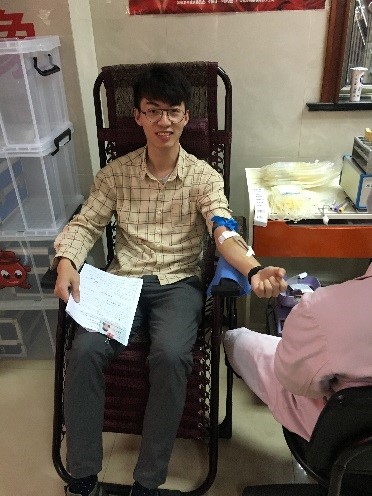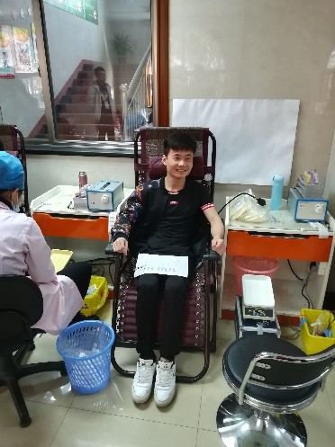 此次参与义务献血的有材料物理与化学专业的黄志强、王梦晓和张科3位同学以及英国正版365官方网站季佳梁老师、外国语学院段志勇老师,他们对待学习工作,踏实勤奋,积极热情,深得老师同学的好评。他们按照流程先后填表、化验、采血,整个过程中始终面带笑容。