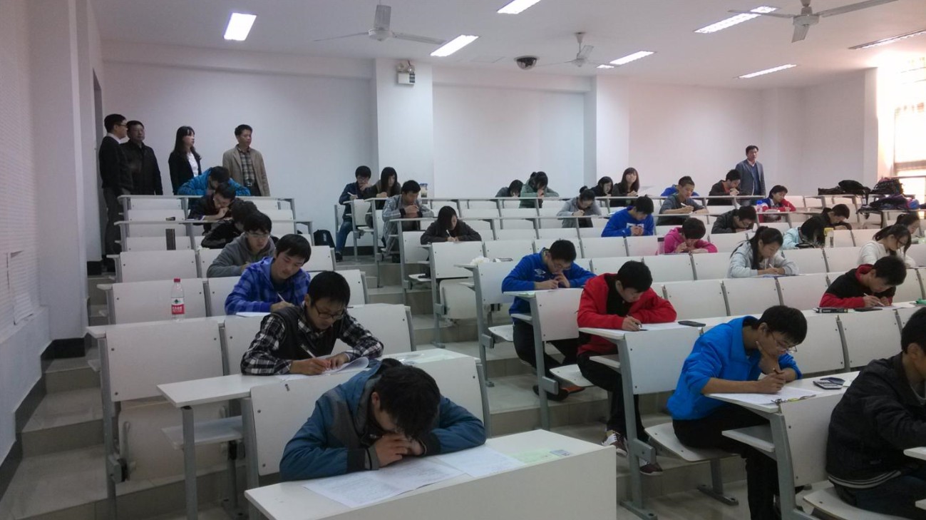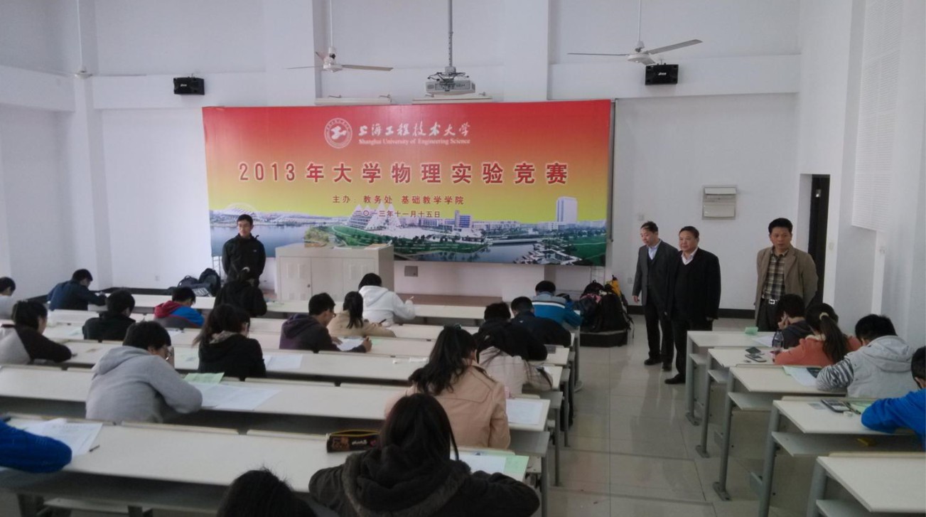 本次竞赛旨在丰富校园文化建设,锻炼大学生实践动手能力,鼓励他们崇尚科学、追求真知、勤奋学习、锐意创新。经过广泛的宣传和积极的鼓励,学生们踊跃报名,截止到11月4日报名终止日,共有510名学生报名参加。竞赛分为初赛和复赛两个阶段,初赛采取闭卷考试的形式,即笔试,竞赛时间为1.5个小时;复赛形式为实验实践操作竞赛,内容是每位学生选择一项创新性实验来进行实验内容和实验步骤的创新设计。 本次竞赛是在学校领导的亲切关怀、教务处的大力支持下和学院领导的直接指导下顺利举行的。初赛进行期间,学院领导张子厚院长、党总支王勤书记、张朝民副院长、李路副院长、许柏生副书记一同来到笔试考场进行指导,并对比赛的组织和举办给予中肯的评价,并提出了宝贵的建议。 初赛结束后,物理实验教学部教师当天加班,对此次初赛的考卷进行了批改。通过教师的紧张批阅选拨出此次竞赛的前58名实验基础知识优秀的同学(名单见:http//phylab.sues.edu.cn),这些同学即将在12月份参加下一阶段考察实验创新综合能力的复赛。经过两轮的竞赛来提高同学们的实践动手和设计创新能力,为渲染和营造良好的校园文化氛围添砖加瓦。