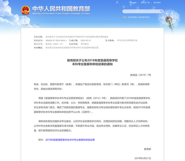 近日,教育部公布了《教育部关于公布2018年度普通高等学校本科专业备案和审批结果的通知》(教高函〔2019〕7号),我校申报的数据计算及应用(专业 代码:070104T)本科专业成功获得教育部审批设置,该专业是目录外新专业。新专业申报的标准高,而目录外新专业的审批尤为严格。数据计算及应用专业的成功获批,表明我校在新工科中的应用数学专业建设上取得重大突破:首次引领设置全国唯一的“数据计算及应用”新专业。