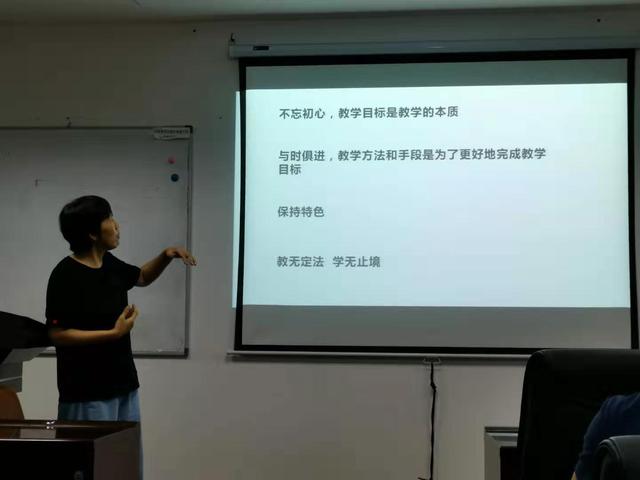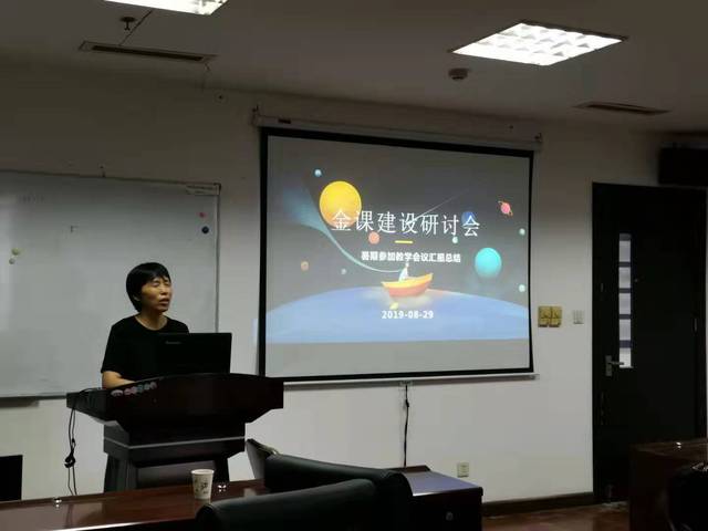 新学期始伊,为深入贯彻新时代全国高等本科教育的会议精神,加快我校“金课”建设,2019年8月29日数理外国语联合党委第六党支部在行政楼1307举办了发挥党员先锋模范带头作用系列活动之“金课”建设交流报告。此次活动由第六党支部牵头、组织物理教学部的教师参加交流,报告由第六党支部老党员徐红霞老师主讲,报告题目是:“金课建设研讨会—暑期参加教学会议汇报总结”。
