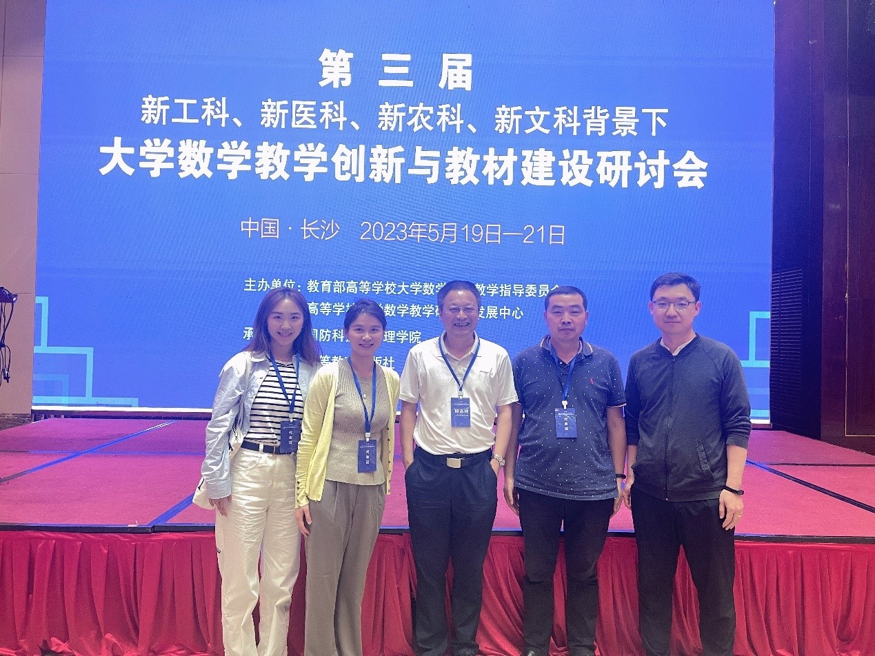 5月18日-21日,第三届新工科、新医科、新农科、新文科背景下大学数学教学创新与教材建设研讨会在湖南省长沙市召开,会议由教育部高等学校大学数学课程教学指导委员会、高等学校大学数学教学研究与发展中心主办,国防科技大学理学院承办、高等教育出版社协办。教育部高等学校大学数学课程教学指导委员会委员、上海工程技术大学发展规划处处长殷志祥教授,英国正版365官方网站郑中团副院长,吴隋超副教授,罗雅琴博士,周晶博士参加会议。