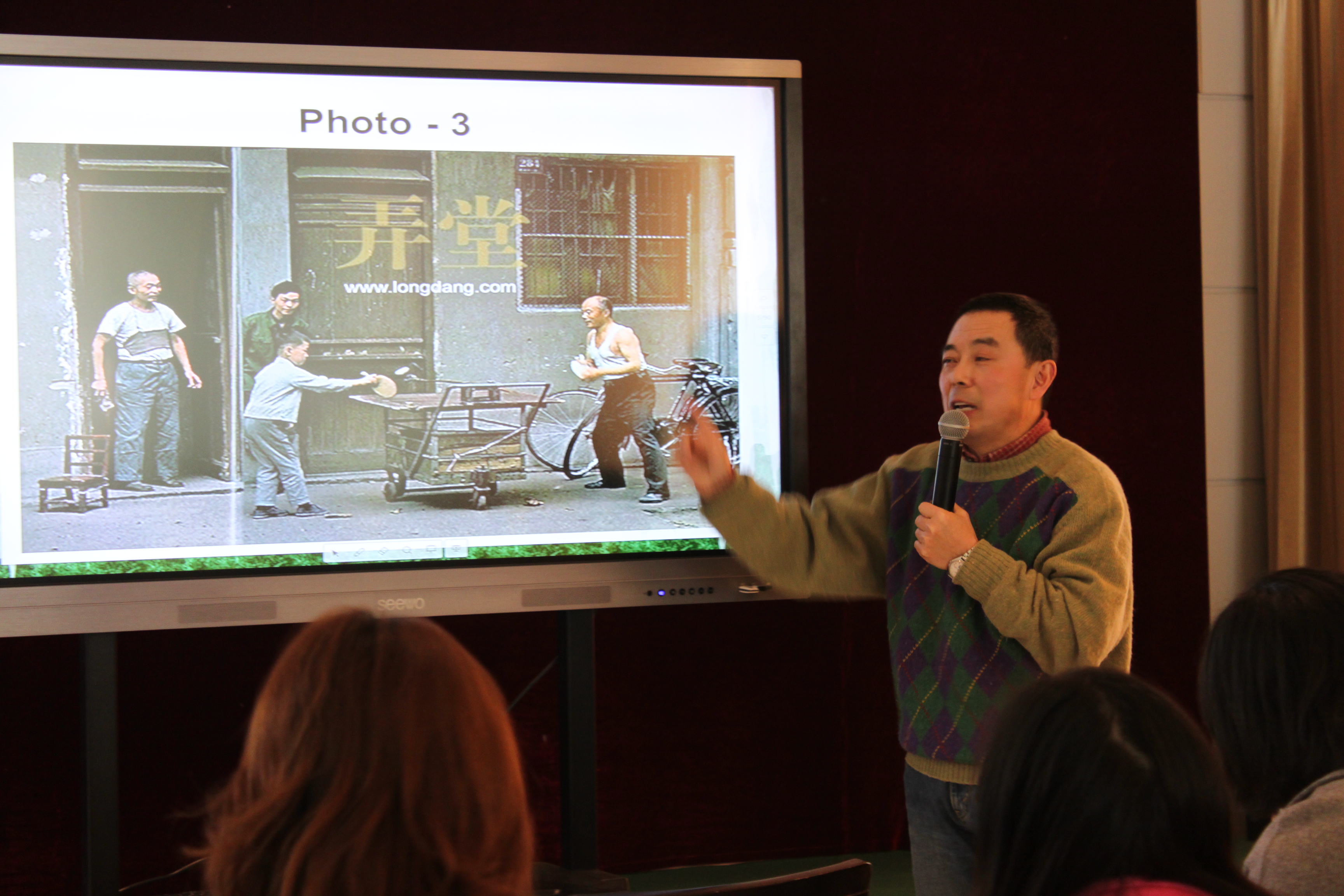 活动伊始,外国语学院沈逸平老师从弄堂历史、石库门建筑、弄堂特色、弄堂游戏四个方面对弄堂文化做了详细介绍。通过文字与图片相结合,不仅让在场的所有人感受到弄堂凝固着人们的需要、感情、审美、希望和追求,还勾起了在场尤其是老上海人难忘的回忆。不得不说弄堂构成了社会的写照,历史的见证,文化的标志,心灵的寄托。活动主办方精心准备了各式特色的弄堂小吃,与会教师细细品味地道的上海弄堂味道。
