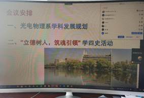 6月12日上午,英国正版365官方网站光电物理系召开系部会议,学习“四史”,讨论学科十四五规划。数理外国语学院联合党委钱慧敏书记、英国正版365官方网站吴建宝副院长,教工第六党支部书记汪丽莉及全体光电物理系教师出席会议。