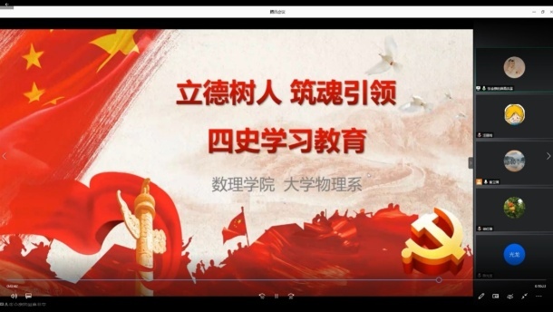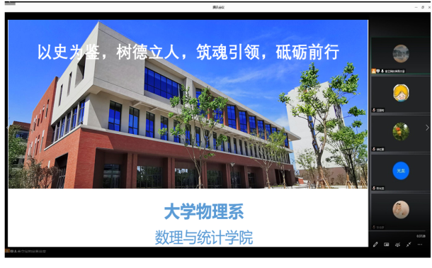 “以史为鉴,树德立人,筑魂引领,砥砺前行”,2020年6月12日15:30,英国正版365官方网站大学物理系全体教师举行在线系部会议,会议组织教师四史政治理论学习,开展十四五规划讨论,进行在线教学经验交流分享。