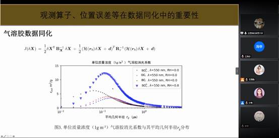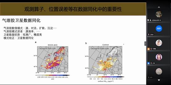 金建炳教授首先介绍了观测误差、模拟误差的含义及其产生的具体原因。接着,金教授阐述了数据同化的理论基础:贝叶斯定理和观测算子、数据同化的优缺点以及机器学习和数据同化方法的共性和个性。最后,金教授详细讲解了数据同化技术在气溶胶卫星观测误差和沙尘暴位置误差校正的具体应用。